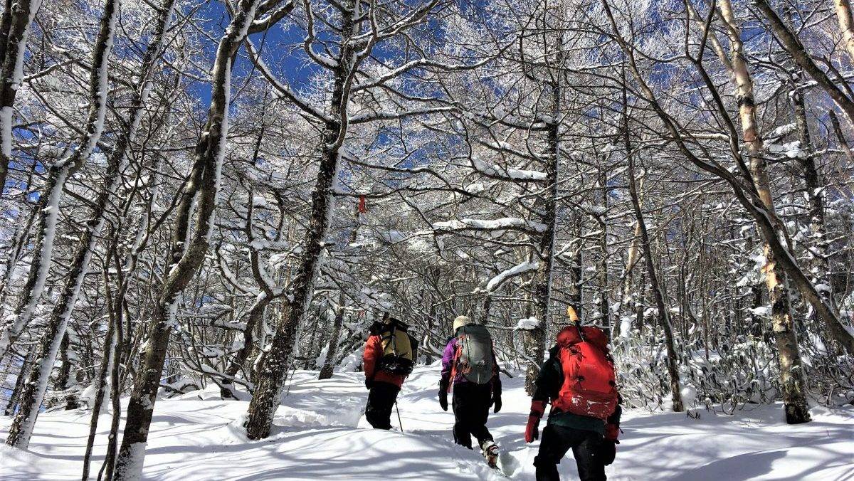 アイゼン・ピッケルが使えても、深い雪ややわらかい新雪の上を歩く技術がなければ、アルパインエリアに到達するのは難しいです。スノーシューやワカン、またはツボ足での雪上歩行技術をしっかりと磨くことが重要です。